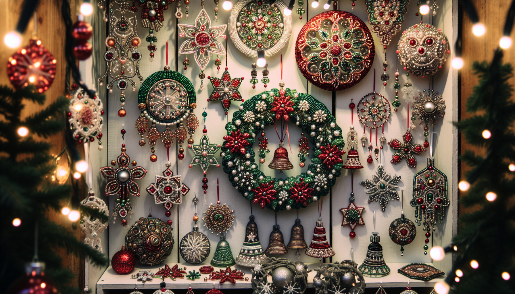 Ornamentele festive din mărgele sunt decorațiuni minunate, realizate manual, care pot împodobi locuințele și încăperile în perioadele de sărbătoare, oferindu-le un caracter personal și colorat. Acestea pot varia de la globuri și steluțe, la figuri simbolice specifice sărbătorilor, cum ar fi brazi, reni sau chiar Moș Crăciun, toate realizate din mărgele de diferite dimensiuni și culori.