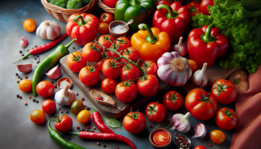 Ingredient: Roșii și Ardei Grași Descriere Rosiile, cunoscute științific sub numele de Solanum lycopersicum, sunt fructe botanice considerate legume datorită utilizării lor culinare. Cu o textură suculentă și un gust ușor dulceag, roșiile sunt adorate în numeroase culturi pentru versatilitatea lor remarcabilă. Ardeii grași, pe de altă parte, sunt...
