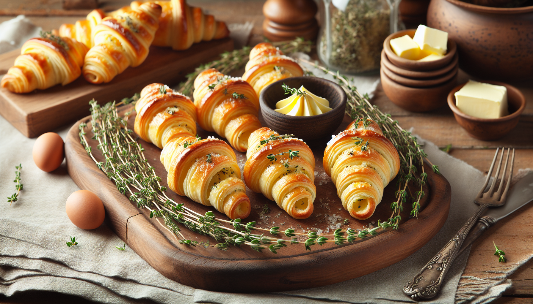 Cornulețele sărate cu unt și cimbru reprezintă o alegere perfectă pentru cei care adoră gustările sărate și aromate. Aceste delicii fragede, cu o textură crocantă la exterior și moale la interior, sunt îmbogățite cu gustul bogat al untului și o notă parfumată de cimbru. Sunt ideale pentru servirea la ocazii speciale, întâlniri cu prietenii sau ca un snack rapid în cursul zilei.