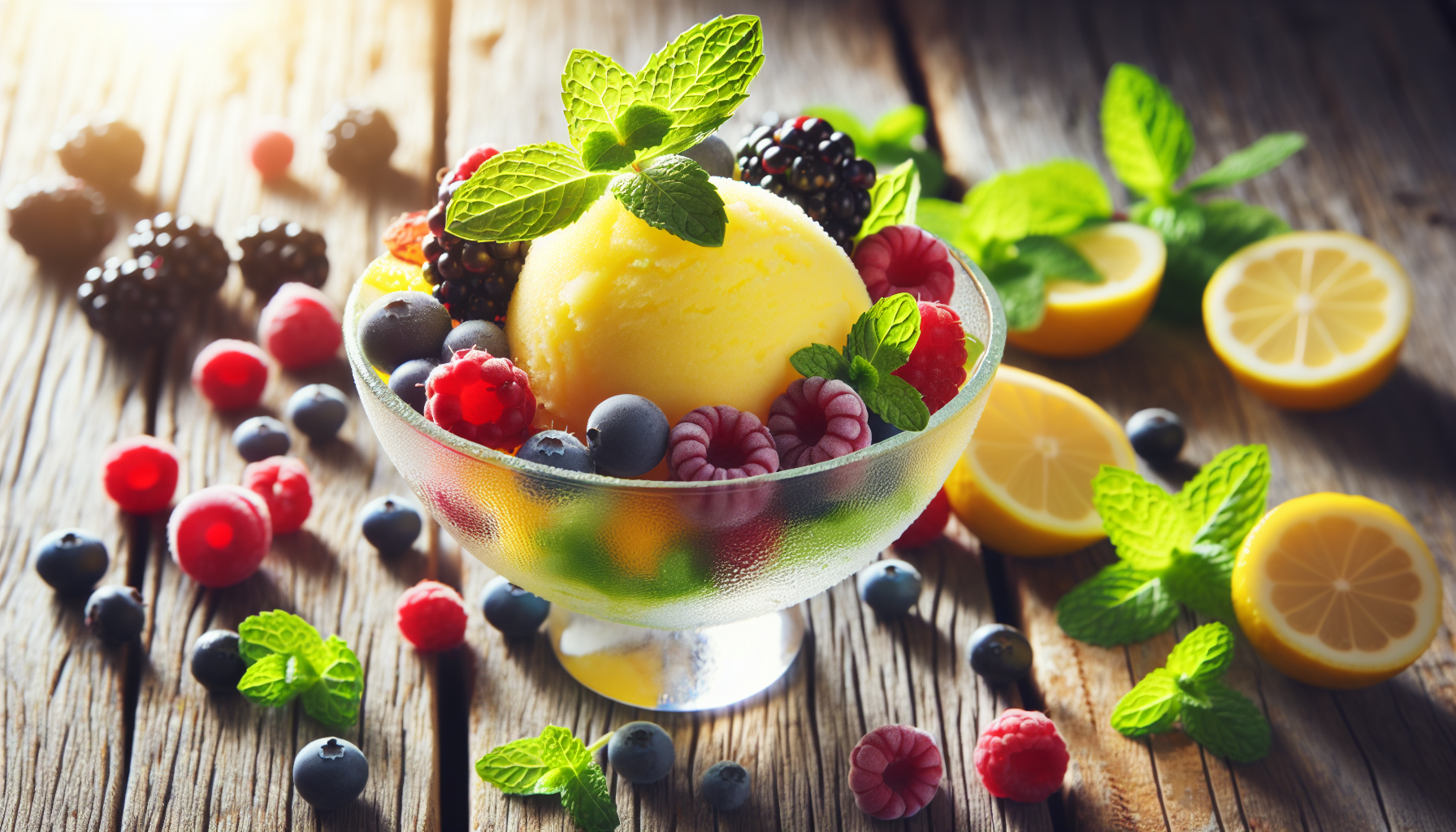 Sorbetul de lămâie cu mentă și fructe de pădure este un desert răcoritor și aromat, perfect pentru zilele calde de vară. Combinația de citrice vioaie și dulceața fructelor de pădure, completată de prospețimea mentei, oferă o experiență gustativă complexă și revigorantă. Acest sorbet poate fi servit ca atare sau ca parte a unui desert mai sofisticat. De asemenea, este o opțiune excelentă pentru cei care caută alternative sănătoase, având o valoare calorică scăzută și fiind fără lactate.