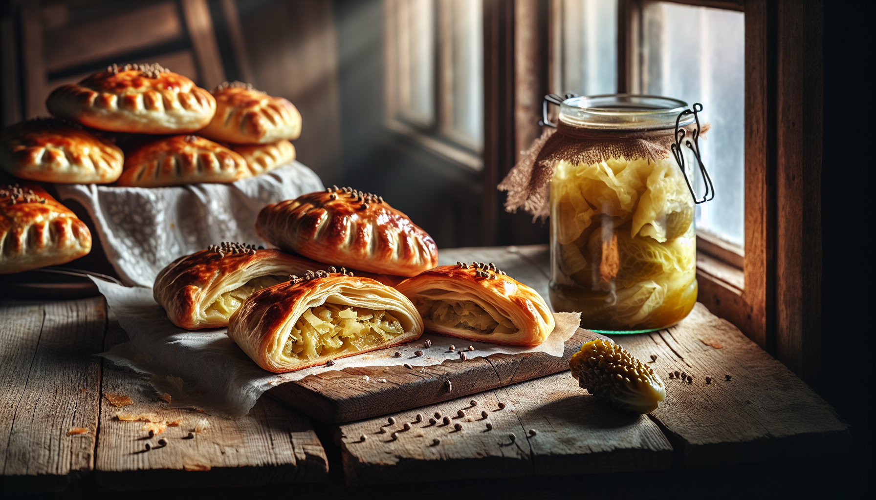 Plăcintele cu varză murată își au rădăcinile în bucătăria țărănească, unde ingredientele disponibile la ferme erau utilizate pentru a crea mese sățioase și nutritive. Popularitatea lor a crescut datorită simplității și costului redus al ingredientelor, dar și pentru că pot fi servite atât la prânz cât și la cină.