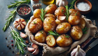 - Cartofi wedges – Cartofi tăiați felii și copți la cuptor, asezonați cu rozmarin și usturoi.