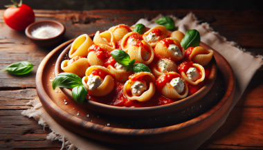 Introducere Descoperă plăcerea gastronomică italiană Conchiglie cu sos de roșii și brânză ricotta este o rețetă clasică în bucătăria italiană, cunoscută și apreciată pentru combinația sa cremoasă și aromată de brânză și tomate. Numele "Conchiglie" se referă la paste în formă de scoică, care sunt perfecte pentru a reține sosul și a fi umplute cu...